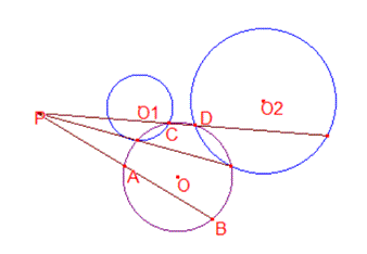 $P$を通る2直線が,与えられた円と2点$A,B$および$C,D$で交わるとき