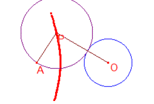 2円に接する円の中心の軌跡はすでに述べたが,点$A$を通り,半径$r$の円$O$に接する円の中心の軌跡は