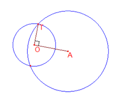 2円$A,O$の交点の片方を$T$とすると,円$A$の半径$AT$は