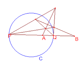 $P$を通る直線がこの円と2点$A,B$で交わるとき