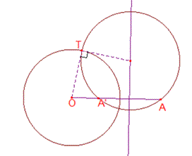 したがって,根軸は,2円両方に直交する円の中心の軌跡である.