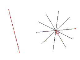 配景写像で,直線上の点と線束の対応